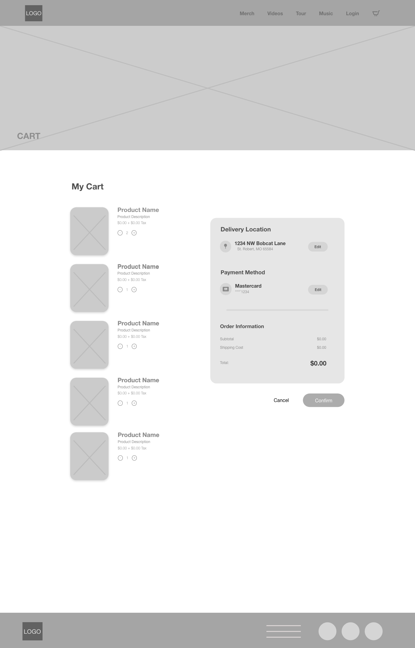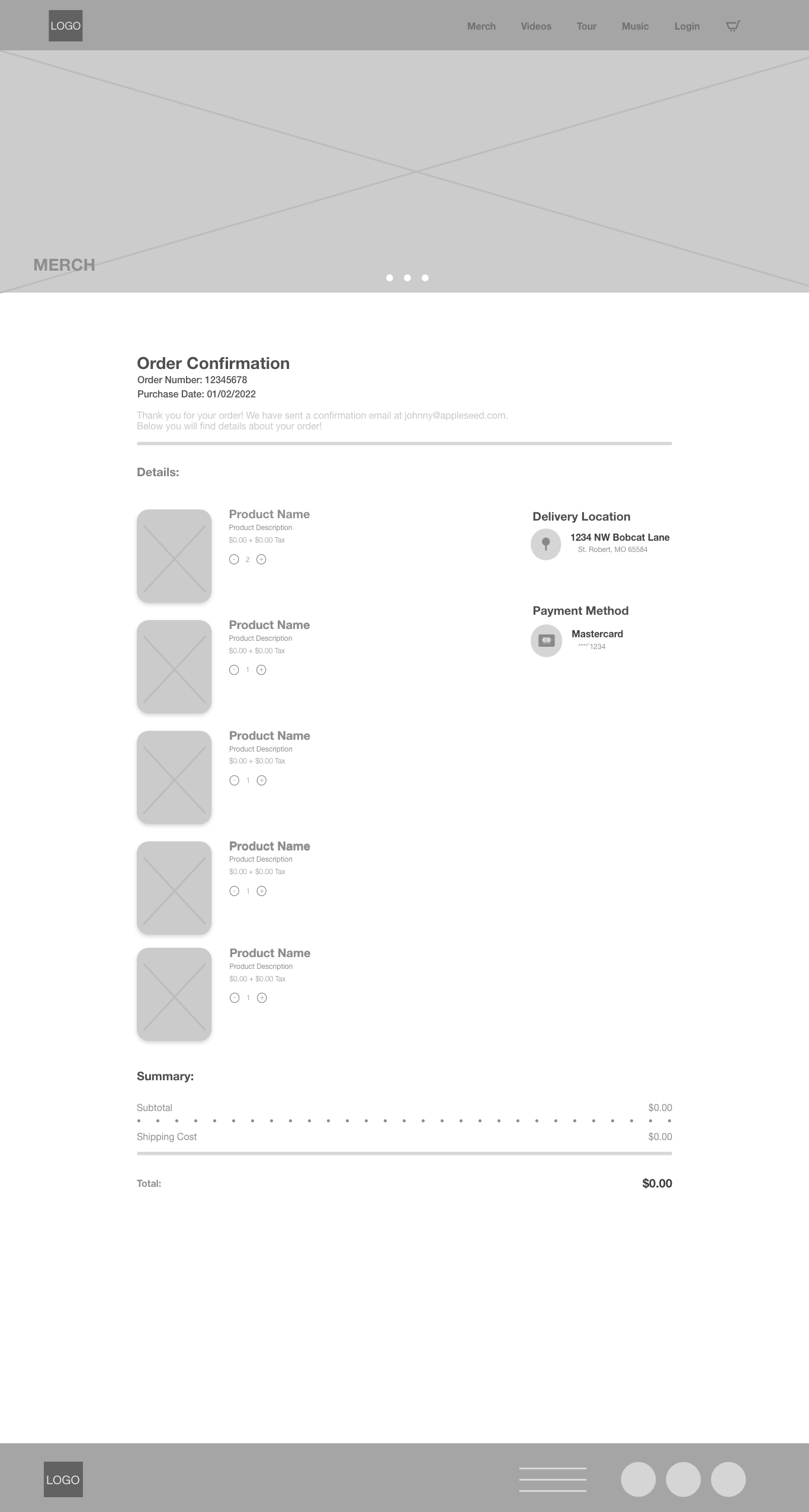 The product is an online ordering website for a DJ with its main functionality including merchandise sales, music streaming, and physical album purchases. All while offering the usual navigations and pages a user would find in an artist’s respective page.
