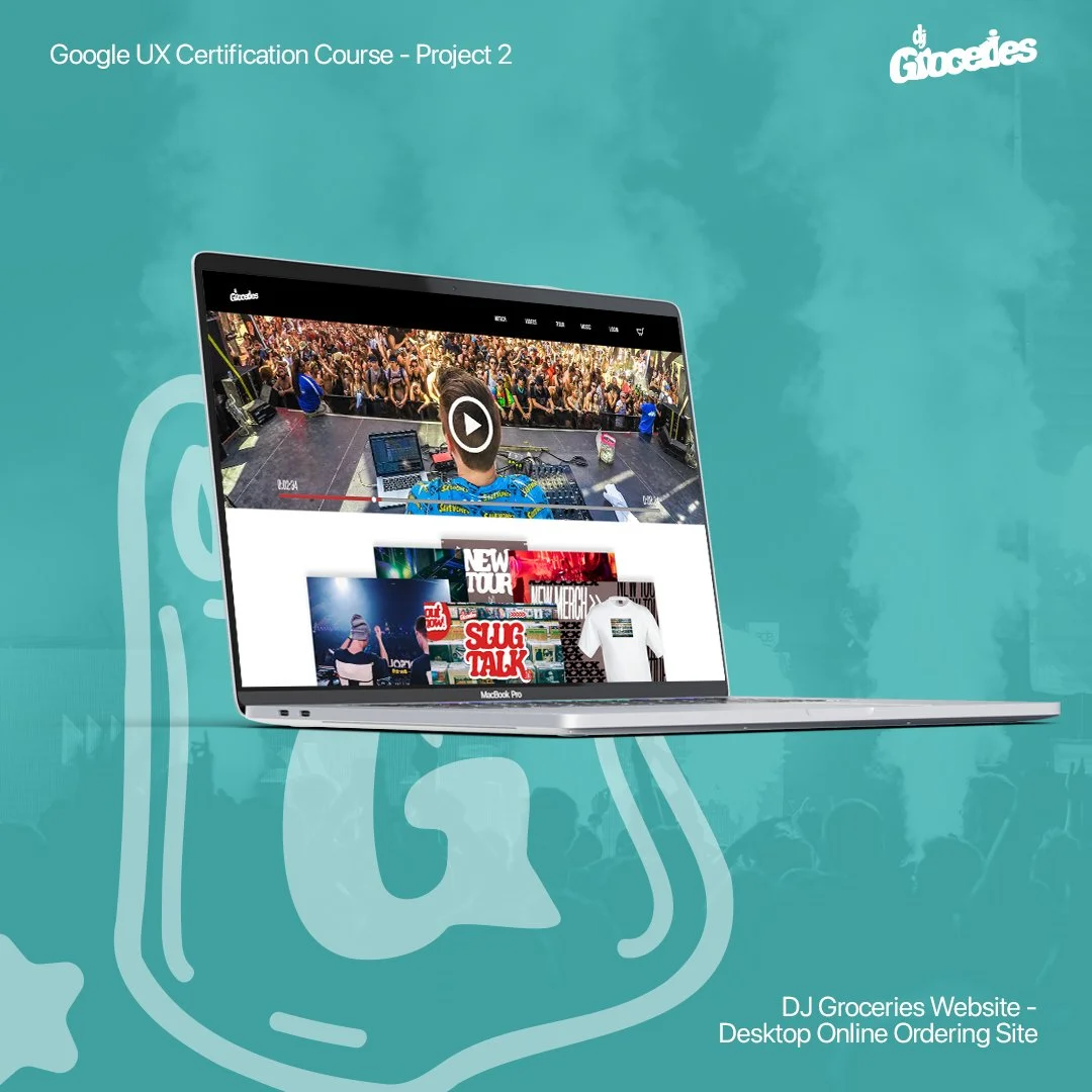 Google UX Design Course Project 2: This project was to provide solutions for an accessible on-site streaming and online ordering platform using a logo and DJ brand labeled DJ Groceries that was created by me to further enhance the authenticity of the site.